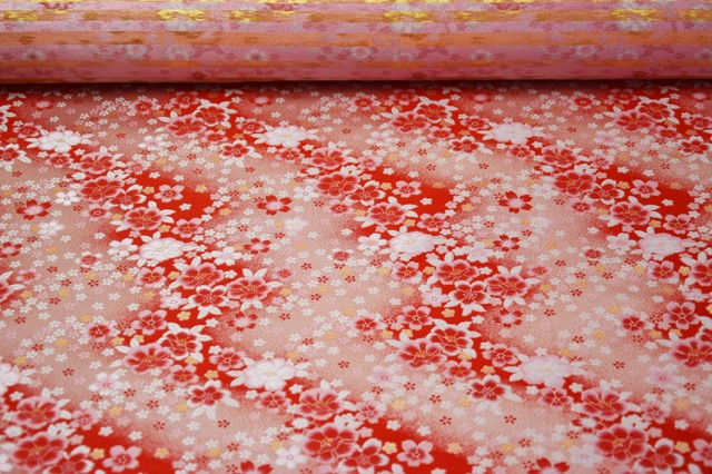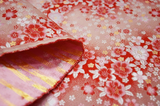 No.9858F-30H1 金襴 流水桜牡丹 赤/ピンク