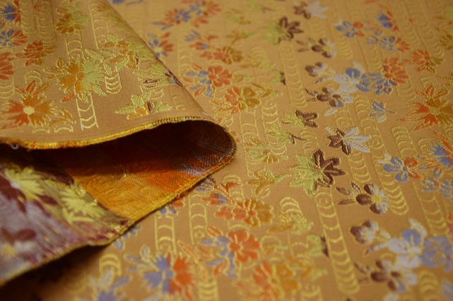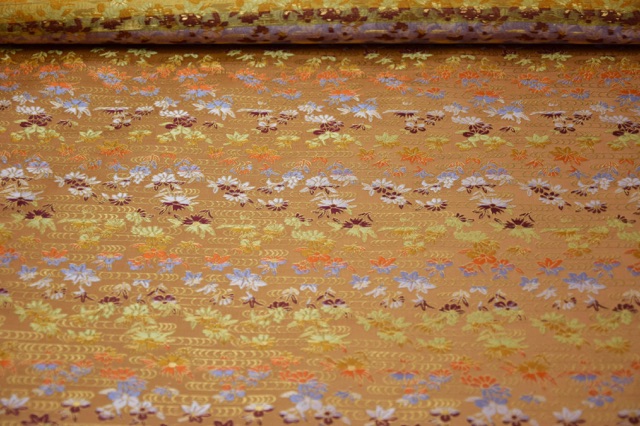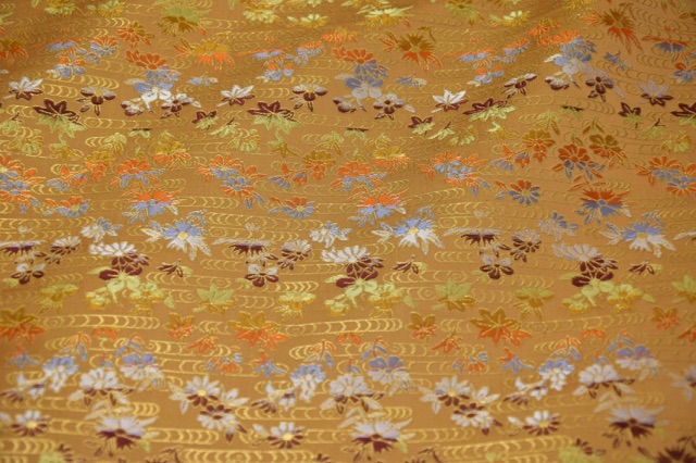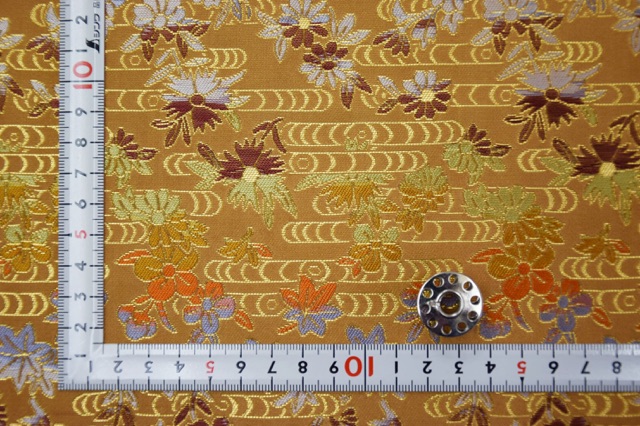 No.335-R1 金襴 正絹 観世水に小花 金茶