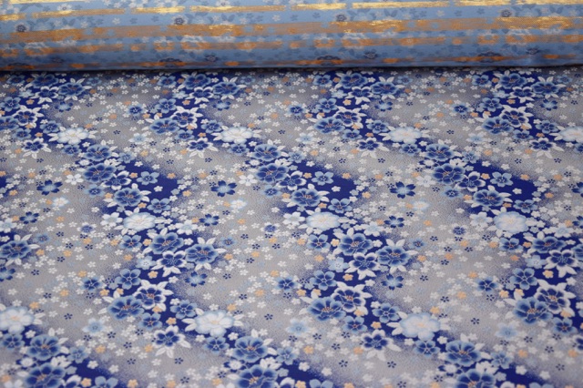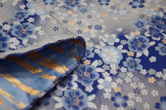 No.9858F-30H2 金襴 流水桜牡丹 ブルー/グレー
